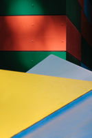 "Für diese fortlaufende Serie arbeite ich bevorzugt in urbanen Außenbezirken, in denen ich nüchterne und farbintensiv gestaltete Betriebe und Einkaufszentren finde. Dort kann ich Ebenen der Gebäude durch Wahl des richtigen Blickwinkels kombinieren. In den Fotografien erforsche ich den Moment des Übergangs, in dem sich dreidimensionale Architektur durch Reduzierung der optischen Bezugspunkte ins Zweidimensionale auflöst.